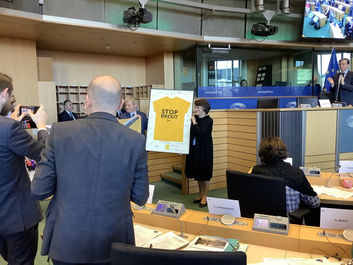 Final meeting of the Renew Group meeting before Brexit. Colleagues have just risen to sing Auld Lang Syne. Tears flowing again.