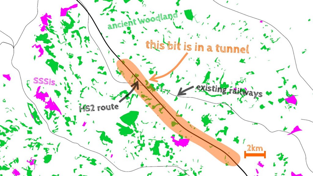 There’s a 1,200 mile road building programme with much more impact. 45km of HS2 is underground, same as Channel Tunnel. HS2 cuts flights & brings huge green rail capacity.pic.twitter.com/y8UTJl9S9q