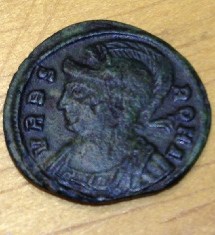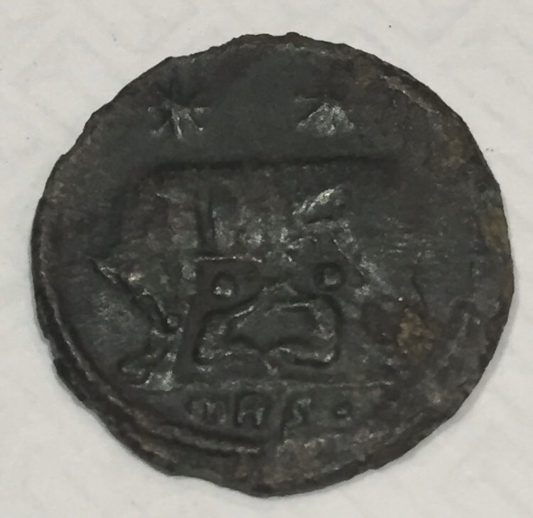 2 Roman commemorative bronze coins, both struck under Constantine the Great AD 306-337. Depicting the She-Wolf suckling Romulus & Remus, one minted in Macedonia the other in Trier Germany found in the same Lincolnshire England field.
