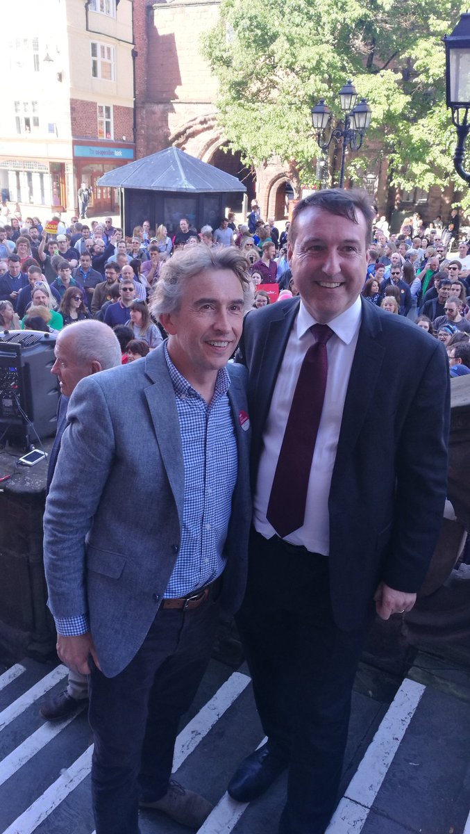 @ChrisM4Chester backed by Steve Coogan at busy town hall eventpic.twitter.com/lnIH7CqaPa