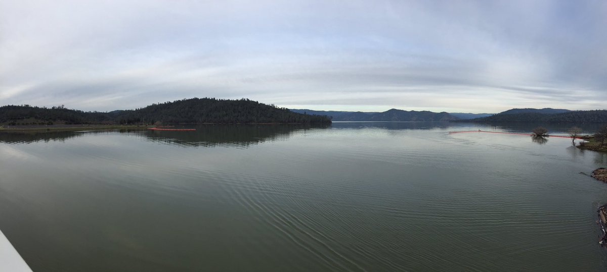 The views from the Oroville Dam -- one toward the lake and one toward the spillways and downstreampic.twitter.com/hf7Gk08WGY