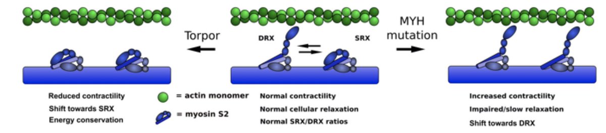 Firstly, we found that hibernation in mammals caused myosin, the molecular motor of muscle contraction, to switch off in the heart. We proposed that humans have this same switch in their hearts, a mechanism conserved in evolution.pic.twitter.com/NAogfWjMsu
