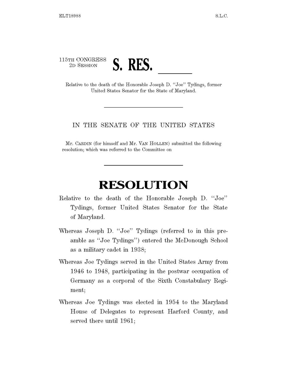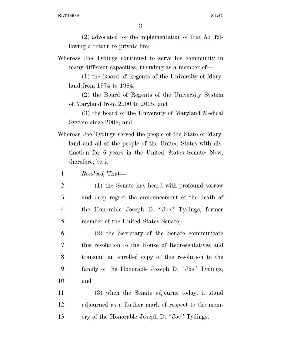 Yesterday, we passed a resolution that I introduced with @SenatorCardin to honor Senator Joe Tydings. Every single Senator—Democrat and Republican—supported it. It’s a small way to pay our respects to a man who was a progressive champion and great public servant.pic.twitter.com/urEAeh83O4
