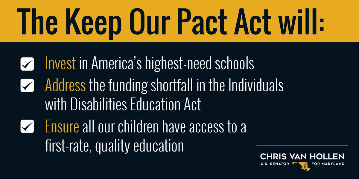 I’m introducing the Keep Our PACT Act to support our nation’s students. This bill will establish a fiscally-responsible path to fully fund IDEA and other federal education funding commitments. It’s time we kept our promises to all our students.pic.twitter.com/6a37I2Ovmf