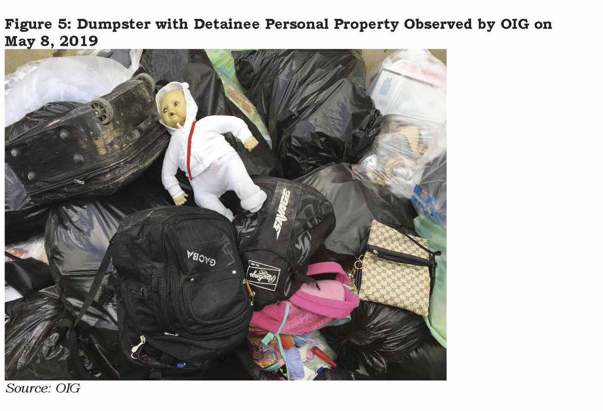 "We also observed staff discarding all other detainee property, such as backpacks, suitcases, and handbags, in the nearby dumpster..." Office of the Inspector General, Department of Homeland Security,May 31, 2019 report on El Paso Norte detention center https://www.oig.dhs.gov/sites/default/files/assets/Mga/2019/oig-19-46-may19-mgmtalert.pdf …pic.twitter.com/tm3wkYjgOw