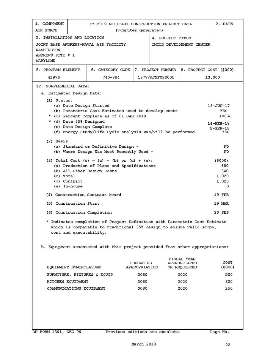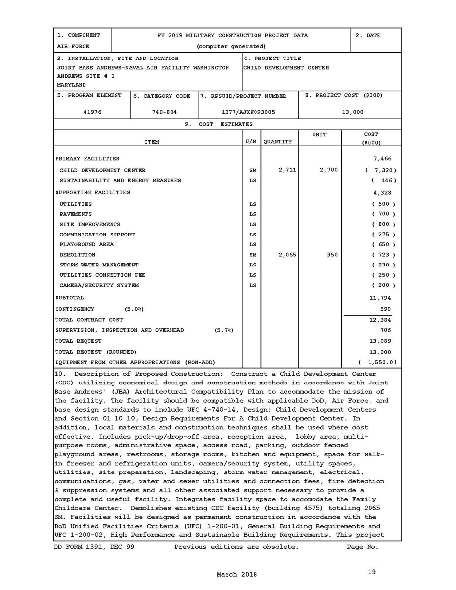 I will fight Trump’s plan to steal funds from a child development center at @Andrews_JBA to pay for his wall. @usairforce shows this will cause "severe financial strain" to military families ($9,400/year) and lower readiness because of “severe degradation” to the quality of life.pic.twitter.com/asValxoNia