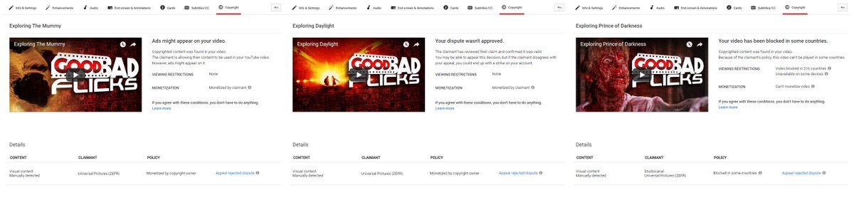 I currently have two appeals running with them, and expect to hear back in as soon as 30 DAYS. I've also received multiple claims from them on many other films throughout the year they decided to release without a fuss.pic.twitter.com/k8yS6EiDsu