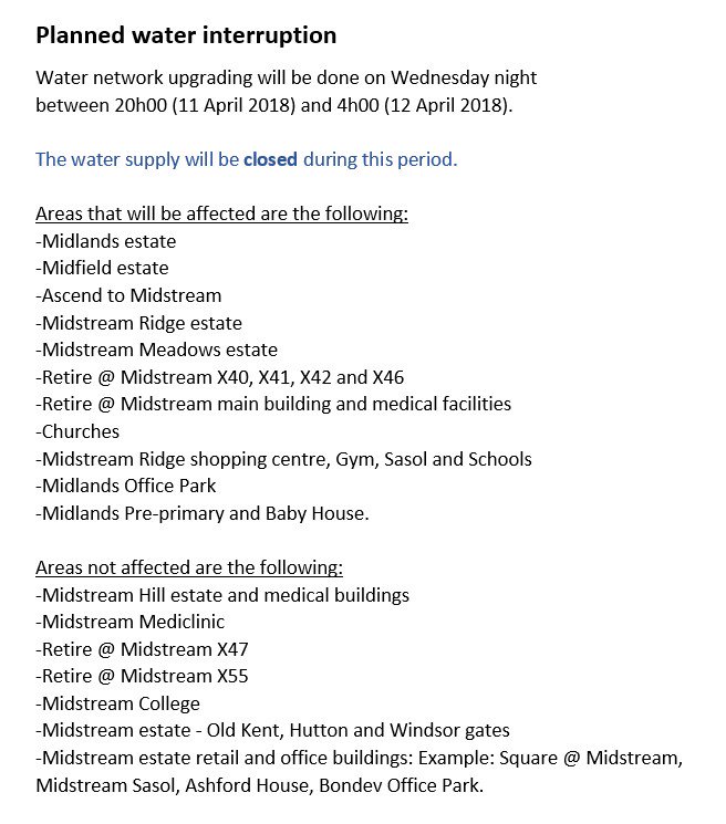 Midstream water interruption on 11 April 2018pic.twitter.com/8I7gTUmjIR