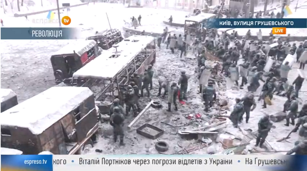 Some Unity Day: MT @ChristopherJM: Riot police in control now, tearing down barricades, chasing protesters #Ukrainepic.twitter.com/MkFsgoQ3pJ