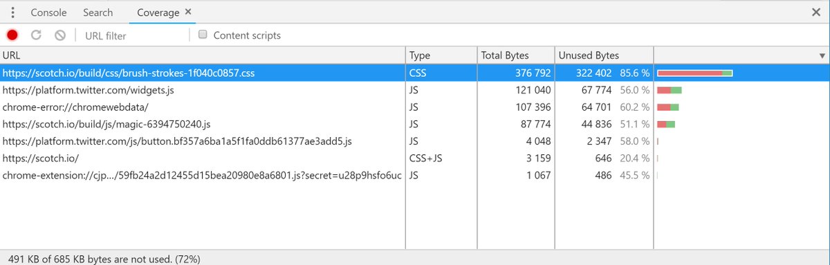 Find out how much of your CSS/JS goes unused. Whopping 86% unused CSS here.
