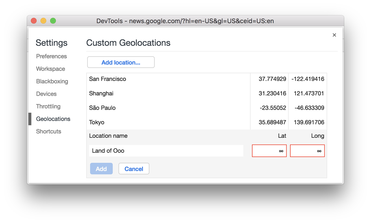 Seems kinda like this ought to have a "picker" based on Google Maps.
