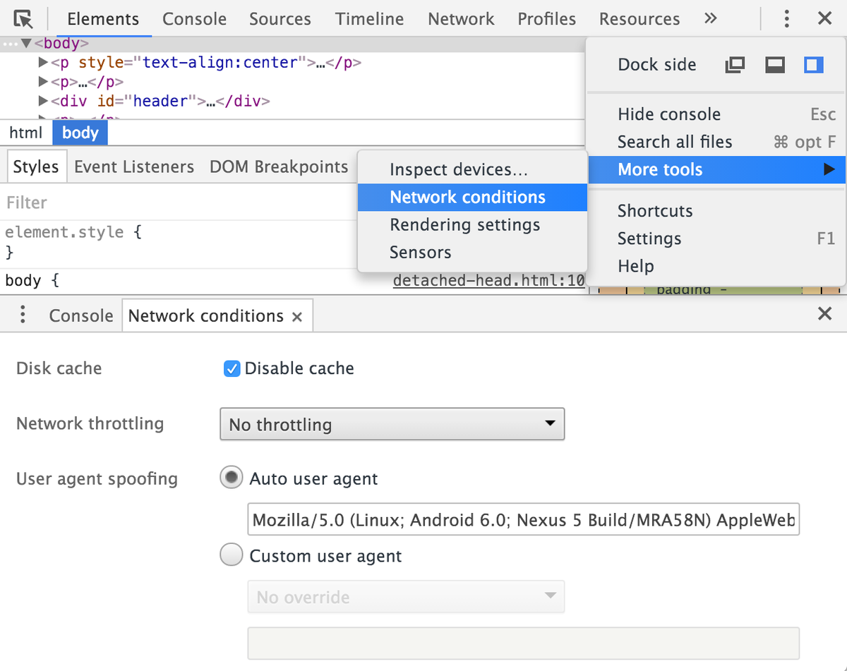 Need to change the user agent or throttle the page? In Canary, we moved these to the new Network Conditions panel.pic.twitter.com/B8qc0AkKQc