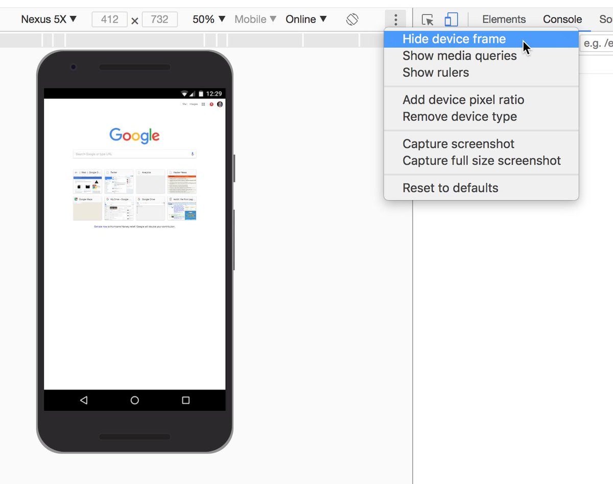 @ChromeDevTools Why do we need a device frame in the dev tools? Imho just adds visual complexity but no real benefit. Can this be disabled?