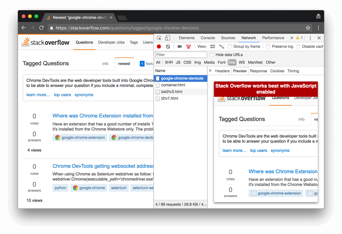 Now in Canary: The Preview tab now always does a basic rendering for HTML resources. It's not a full browser, though, so it may not render exactly as you expect.pic.twitter.com/hRJbB627Cl