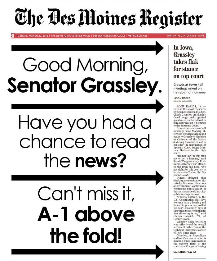 Hey @ChuckGrassley just making sure you saw your home state's paper: http://www.desmoinesregister.com/story/news/politics/2016/03/28/chuck-grassley-takes-flak-supreme-court-stance/82362928/ … #DoYourJobpic.twitter.com/oTqNtCPveq