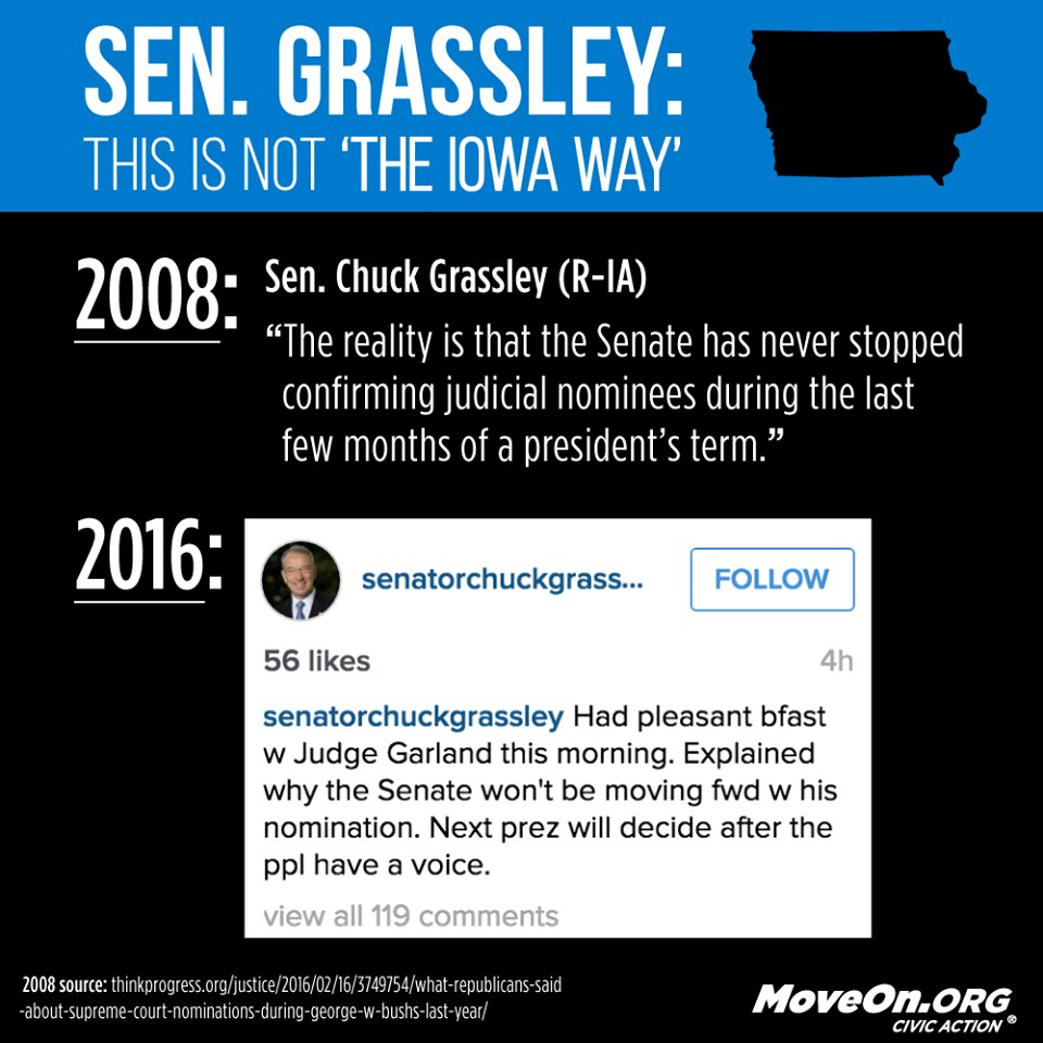 @ChuckGrassley your denial to give Garland a hearing will be forever apart of your legacy. What a disgrace...