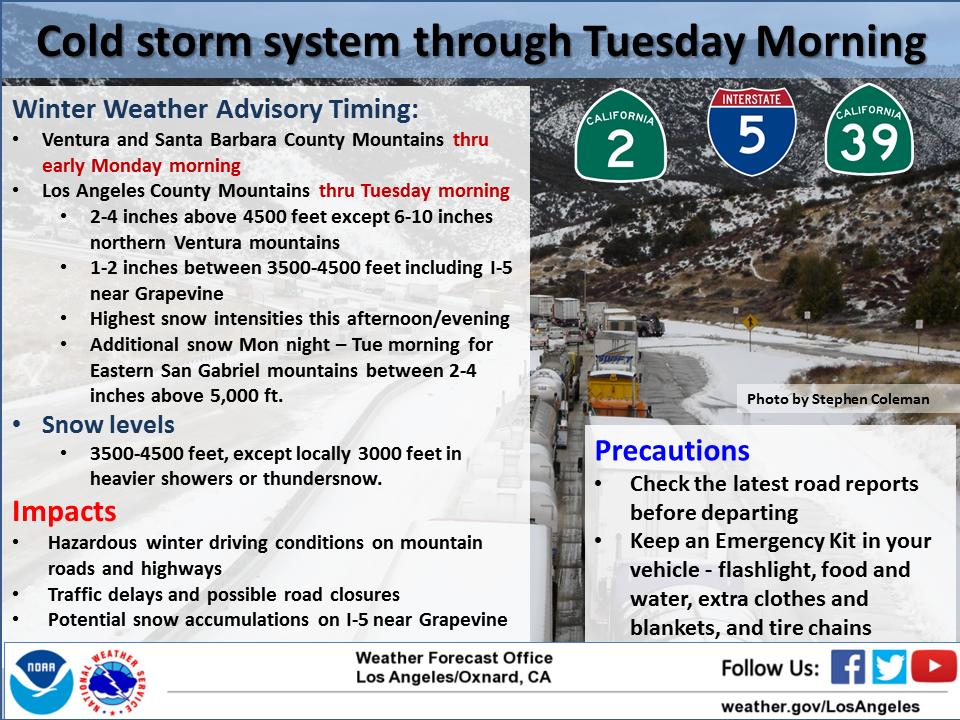 #Grapevine through early Monday morning. Additional snow across the San Gabriel Mtns thru Tue morning where winter wx advisory has been extended.#cawx#LArainpic.twitter.com/Y2VKoMmU4j