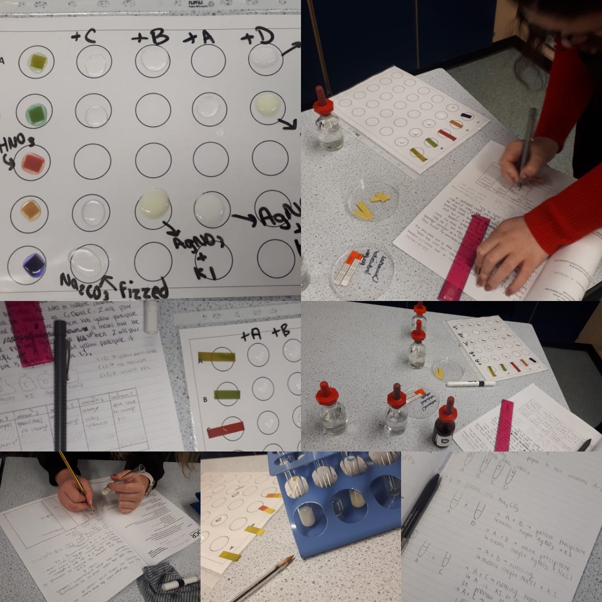Year 12 with Miss Cruikshank working on a microscale to identify unknown solutions. Using pH paper and those solutions only, they needed to use their knowledge of identifying ions to identify sodium carbonate, potassium chloride, sodium chloride, nitric acid, silver nitrate.pic.twitter.com/805ISWTNh8