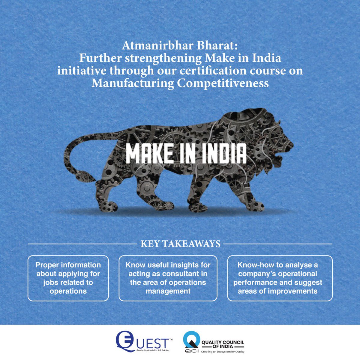 @QCIelearning Division has designed a course on Manufacturing Competitiveness supporting the#MakeinIndia initiative.