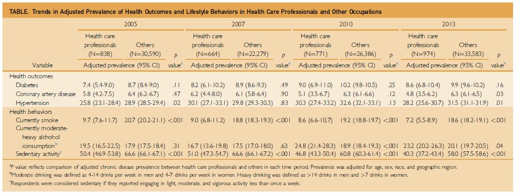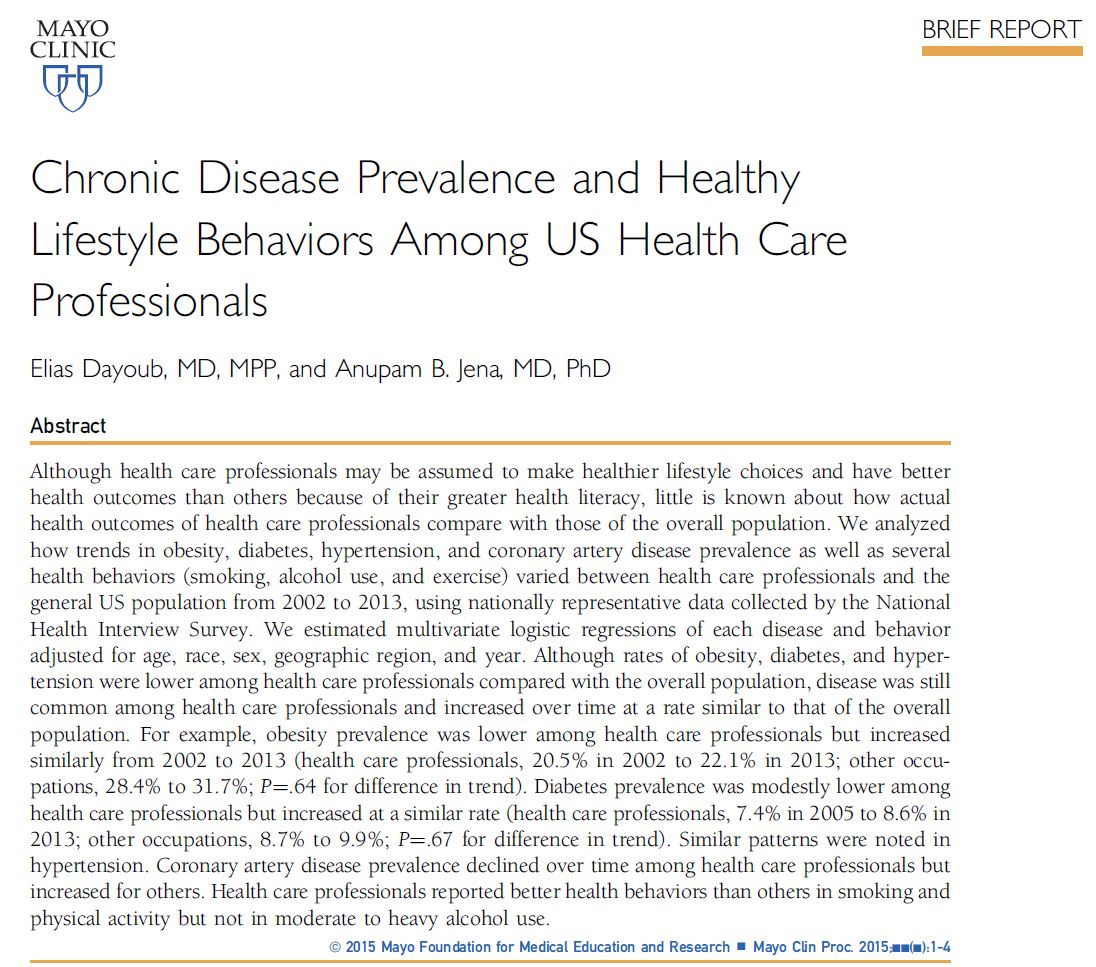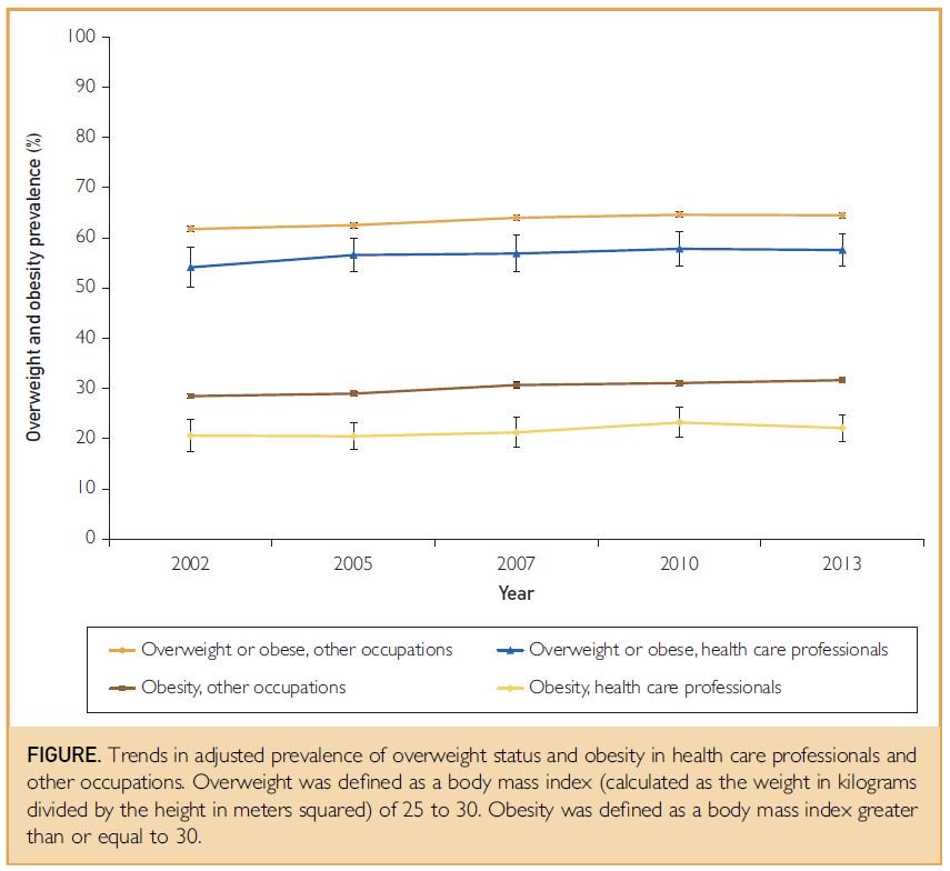 'Personal accountability' in health care is really hard We've shown that even health care workers have high rates of obesity, diabetes, heart dz, hypertension; not so diff from general population. Relates to great piece by