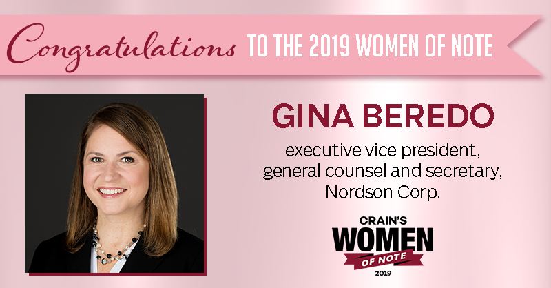 #CrainsWON honoree Gina Beredo of@Nordson_Corp - Read her full profile: https://trib.al/PrlQKmc pic.twitter.com/IYT2V2NhVQ