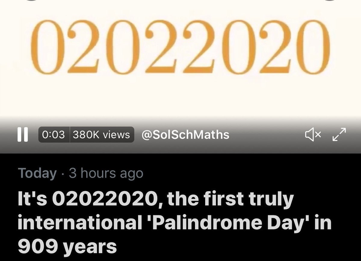 It’s my younger brother’s birthday today, Groundhog Day (always a good excuse to watch that epic comedy) but it is even more special. First true “palindrome day” in 909 years (also a palindrome).pic.twitter.com/k3lIWbw5Zd