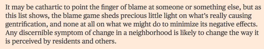 We've got more than 26 things from A to Z of that are supposed to cause gentrification, but playing the blame game keeps us from doing anything to solve the underlying problems of housing affordability and availability. | City Observatory http://ow.ly/ptyQ30q9uSc pic.twitter.com/JZhI7Pkwxa
