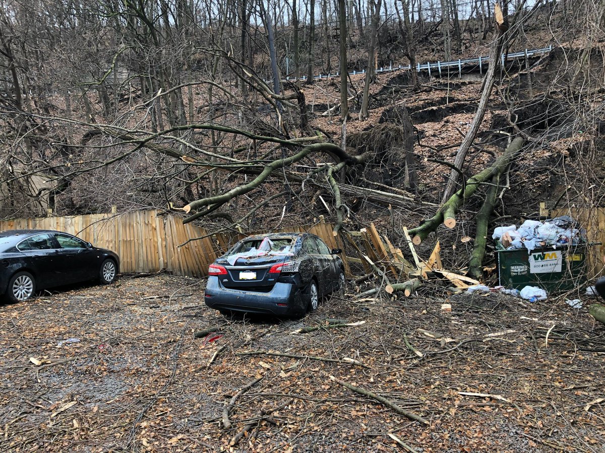 #Pittsburgh’s West End-Elliot border. Sunday saw debris land on several parked cars.@PghDOMI worked to clear the hillside by Thursday. There is still a lot of work to be done in partnership with@PennDOTNews.pic.twitter.com/vMLb0szkMU