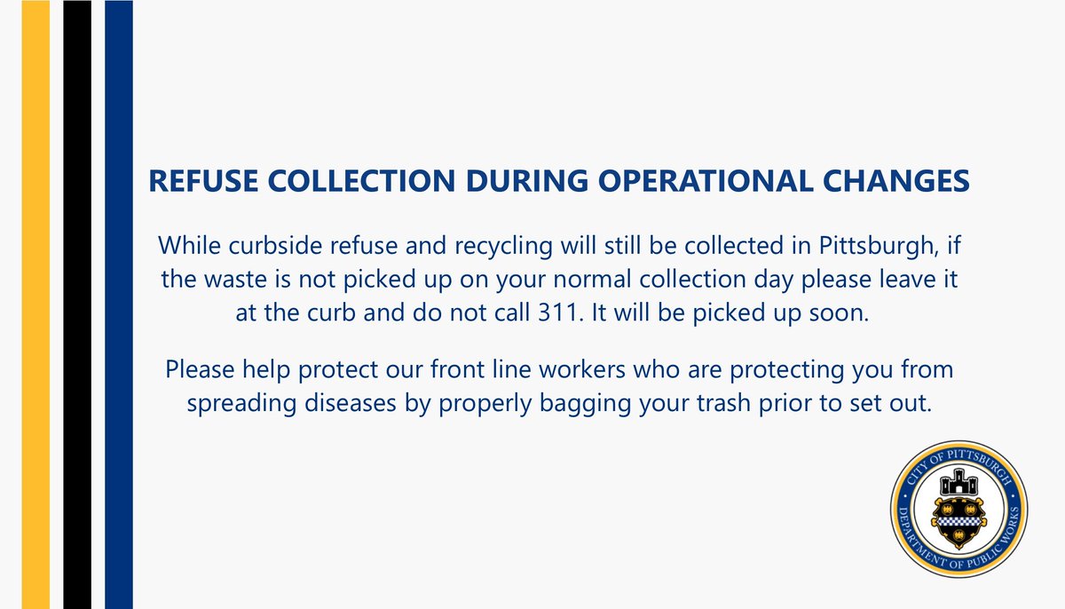 #Pittsburgh will continue to deliver essential public services to residents throughout the response to the COVID-19 pandemic, though starting today some services will be curtailed to protect employee and resident health.https://pittsburghpa.gov/press-releases/press-releases/3737 …Thanks. Twitter will use this to make your timeline better. UndoUndo -