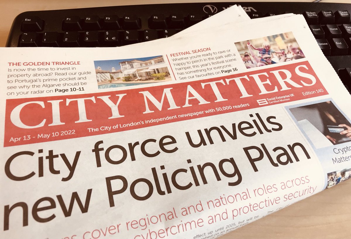 @CityPolice Policing Plan makes the front page of the latest issue of @city_matters, featuring comment from the Chair of the City Corporation’s Police Authority Board, James Thomson, and the force’s Commander, Angela McLaren#police#policingpic.twitter.com/rBeyYNJQW4