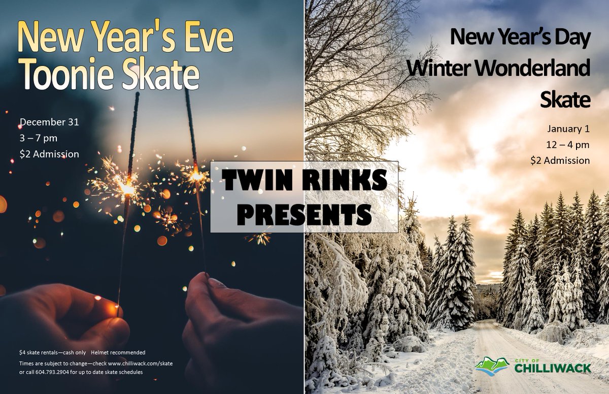 Celebrate the new year at Twin Rinks today or tomorrow with a toonie skate! For skate schedules, visit http://chilliwack.com/skate .pic.twitter.com/aYZDsMManl