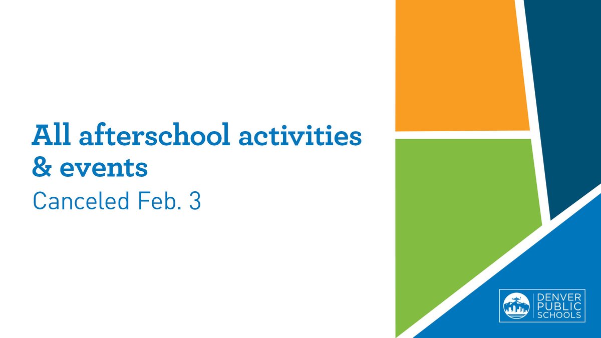 Due to wintery weather, all DPS afterschool activities and programs are canceled today, Feb. 3. Schools will release at their typical times and transportation will be operating on its normal schedule.pic.twitter.com/4S3Qz5MHwt