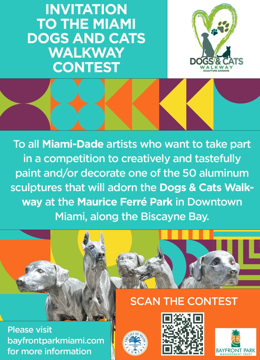 @BayfrontParkMIA is looking for local artists interested in the below art competition. Visit their website http://bit.ly/3v5ArUb or scan the QR code for more info. You can also send questions to contest@bayfrontparkmiami.com Deadline: 6/1/2022pic.twitter.com/ua1JA6vChODogs and Cats Walkway PromoThanks. Twitter will use this info to make your timeline better. UndoUndo -