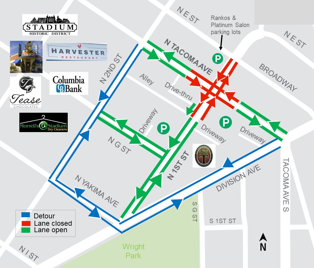 The Hilltop #Tacoma Link project will close the intersection of N. Tacoma Ave. & N. 1st St. starting tomorrow, 1/22, for three weeks