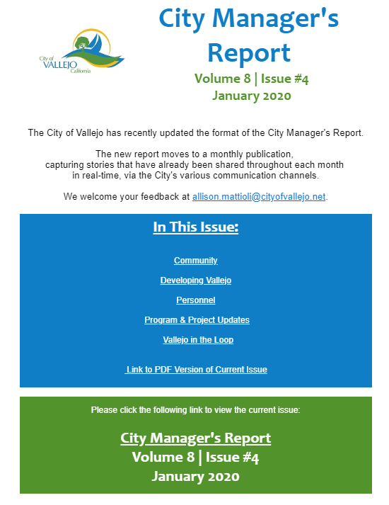 Between January 14, to January 28, 2020, City staff received 223 issues on SeeClickFix. https://stories.opengov.com/cityofvallejo/published/X1XFFXRA6?fbclid=IwAR3_PE0_w5IkaGqr8dyls5fDDdDJyFysitsG6xncexrkUMGx4nvxDwdzD5g …