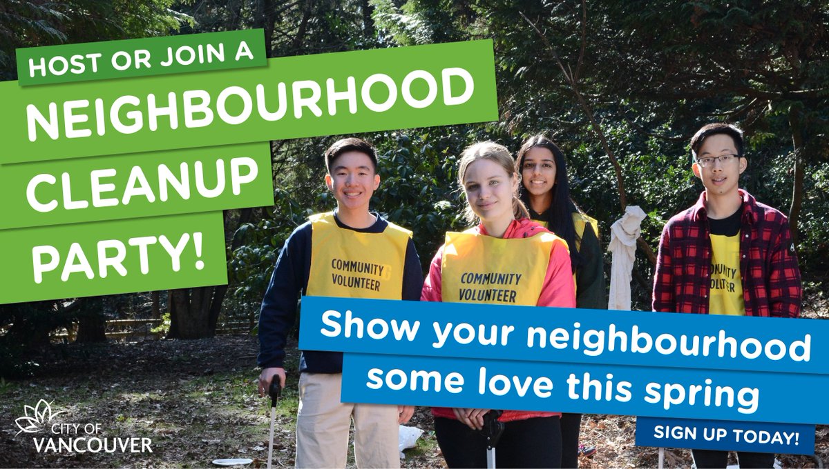 Forecast for Saturday is sunny with a chance of clean. Why not join a cleanup party in your neighbhourhood and enjoy the good weather! Cleanups are happening April 27 across the city. For details visit: http://www.vancouver.ca/cleanup pic.twitter.com/1IBxYa8LN2