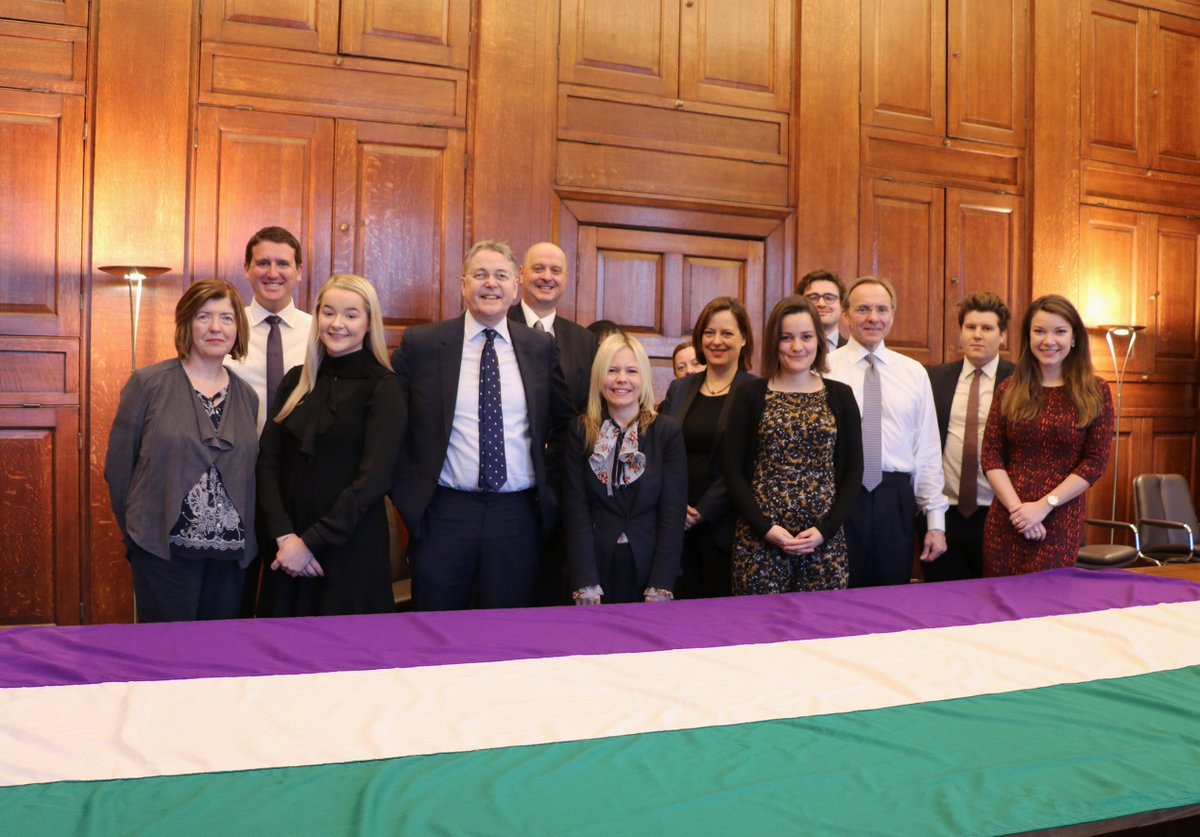 @SuffrageFlag with@dawes_melanie, CS Gender Champion, John Manzoni & my wonderful team to celebrate#100years of women’s suffrage in my office this morning before today’s#IWD2018 event in@UKParliament.@UKCivilService committed to#diversity &#inclusionpic.twitter.com/Ykx3O62WCv