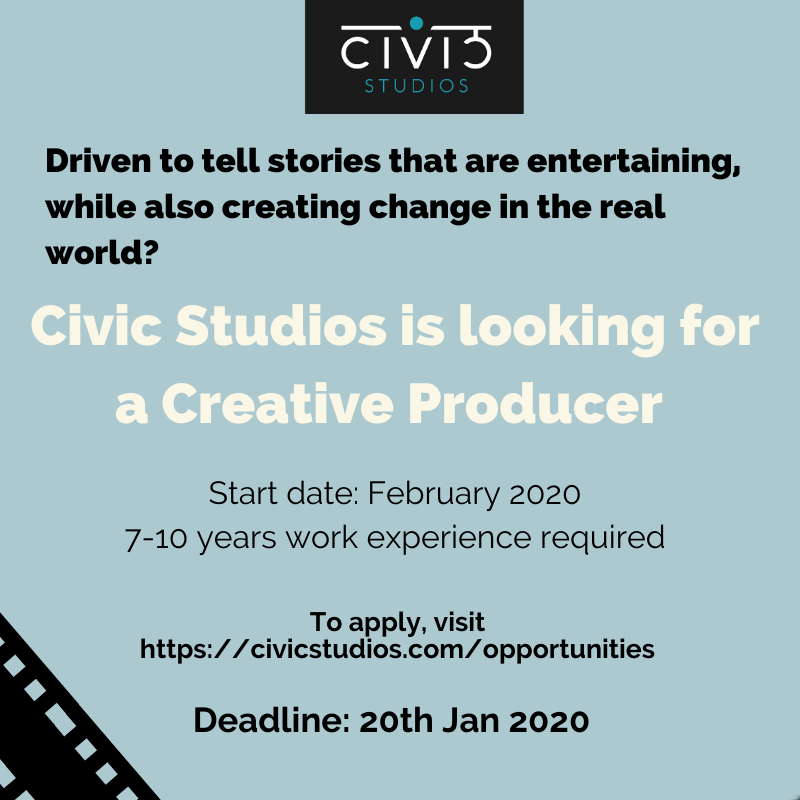 New job alert! Civic Studios is looking for a Creative Producer who is excited to create content that encourages civic change in the real world! All details on how to apply on https://civicstudios.com/opportunities . Deadline in almost 2 weeks!