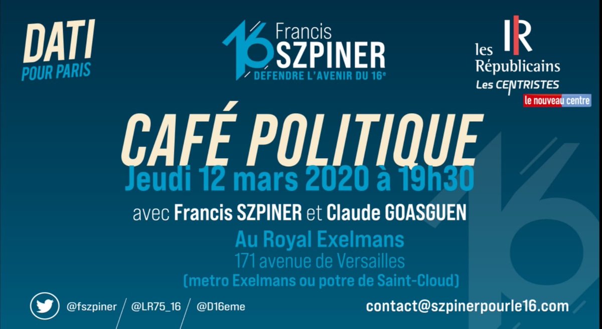 Venez soutenir la seule liste officielle de la droite et du centre autour de @fszpiner@ClaudeGoasguen#DatiPourParis#JeVoteSzpiner@lesRepublicains#EngagésPourChangerParispic.twitter.com/Vw4aip7dXV