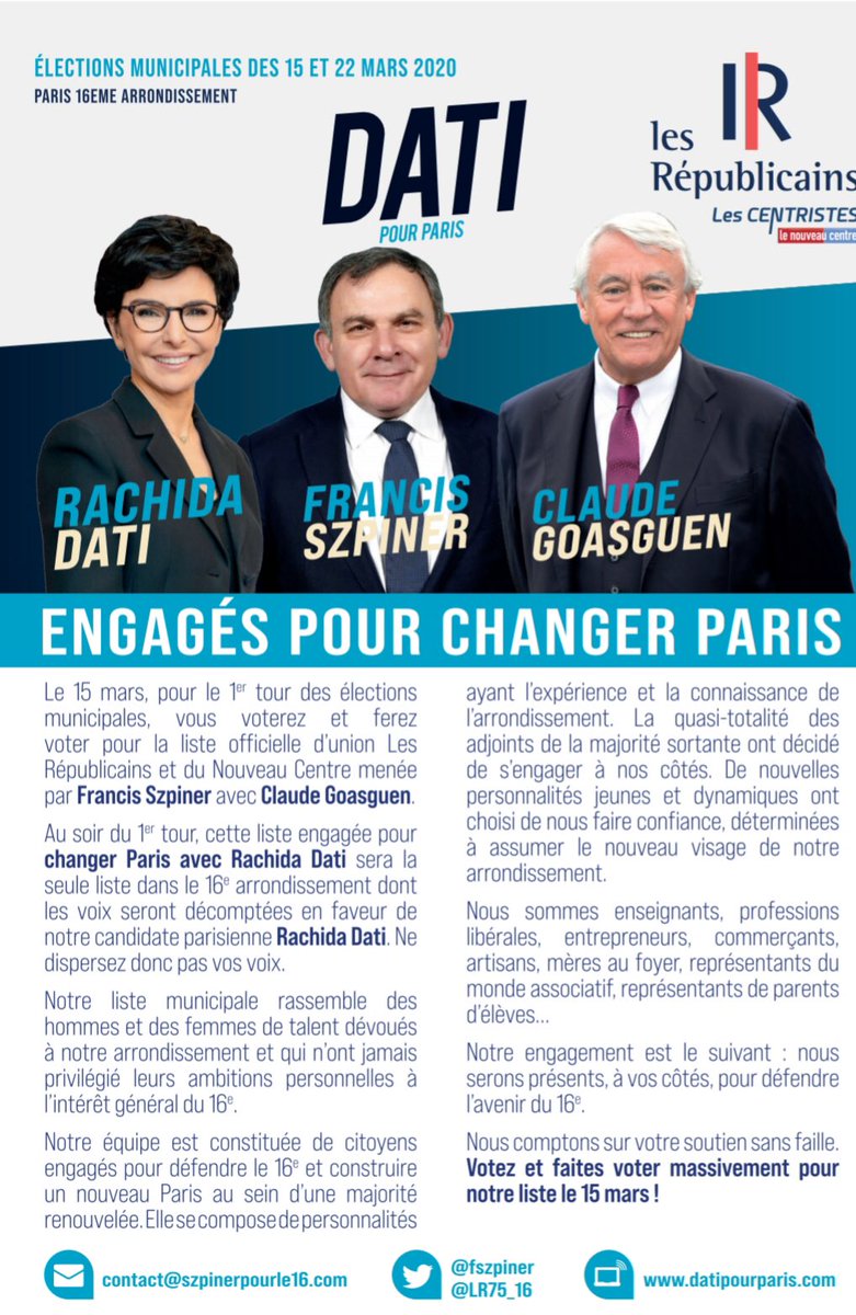#Paris16 sera comptabilisé pour@datirachida, c’est celui apporté à la liste conduite par@fszpiner ! Aucun autre bulletin ne sera comptabilisé pour#Dati au soir du 1er tour.@LR75_16@LesCentristes_#DatiPourParis#engagésPourChangerParispic.twitter.com/GB0Wzb3iyi