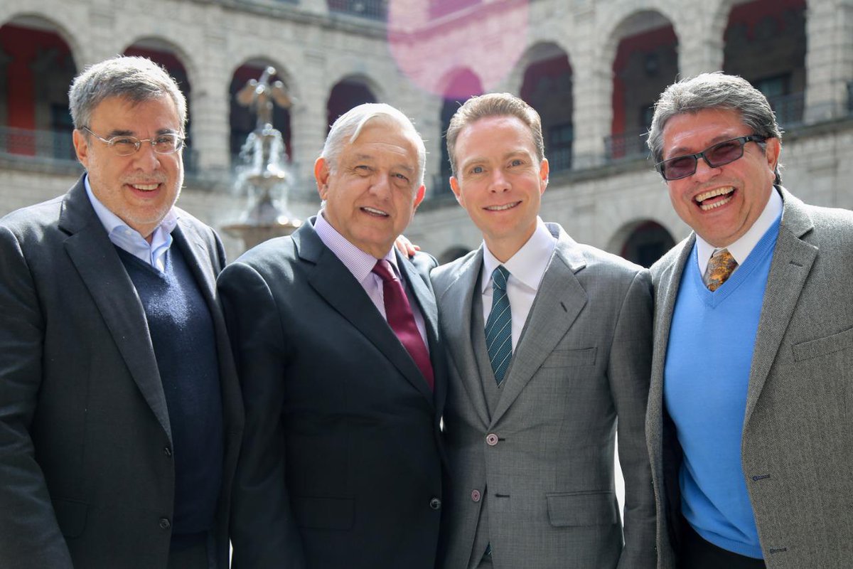 @lopezobrador_ recibió a las bancadas de@MorenaSenadores@PtSenado@PESSenado y PVEM Dialogo con todos y les invitó tamales. Aquí con@RicardoMonrealA@JScherer_Ibarra y@ManuelVelasco_pic.twitter.com/RiNp447D3K