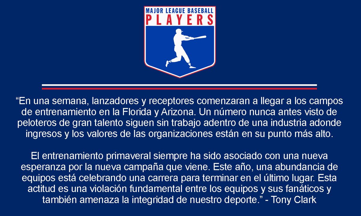 #MLBPA Executive Director Tony Clark Regarding the Integrity of the Game Declaración del Director Ejecutivo de MLBPA Tony Clark Sobre la Integridad del Deporte http://bit.ly/2h9HGpR pic.twitter.com/AkBDLgNpM2