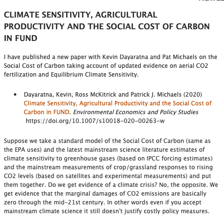 It's representation of damages to agriculture are also just wrong. We show in this paper that current understanding of temperature damages and CO2 fertilization greatly *increase* the SCC in FUNDhttps://www.nature.com/articles/s41467-017-01792-x …