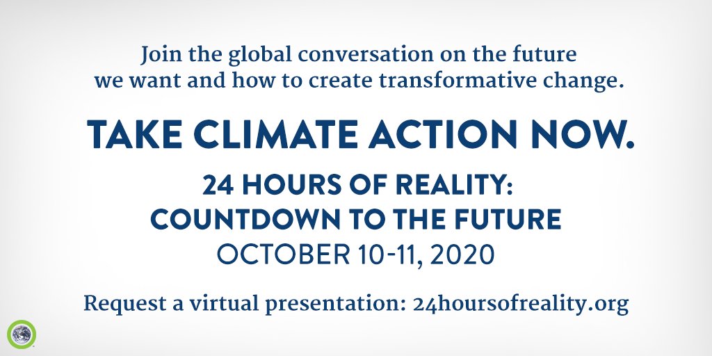 What kind of future do you want? Join us October 10-11 for 24 Hours of Reality: Countdown to the Future to learn how we can all help create the future we need. Register and request a virtual presentation today: https://www.24hoursofreality.org/?utm_source=advocacy&utm_medium=social&utm_campaign=24Hours&utm_term=twitter&utm_content=2020 …pic.twitter.com/PslNlvB6ED
