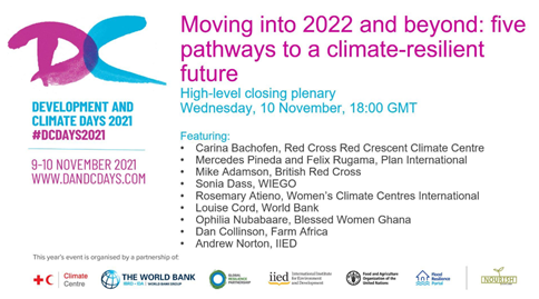 #DCdays21 closing panel this evening focusing on headlines from the future - will it be doom & gloom or#resilience,#Innovations#justice and#transformation ? Does#COP26 give us hope? how do we enhance#ClimateAction?@IIED@RCClimate@WorldBank@FAO@grp_resiliencepic.twitter.com/7SFdoQTYtY