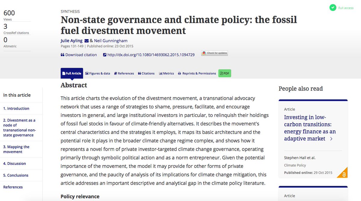With news of ING selling stake in Dakota Access pipeline, a good time to read about evolution of divestment movement http://www.tandfonline.com/doi/full/10.1080/14693062.2015.1094729 …pic.twitter.com/IwdnSOfVw5