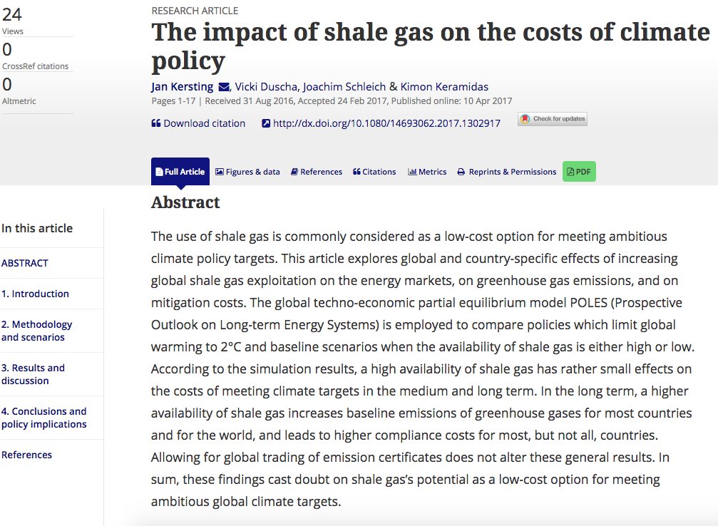 New article casts doubt on shale gas’s potential as a low-cost option for meeting ambitious global climate targets http://www.tandfonline.com/doi/full/10.1080/14693062.2017.1302917 …pic.twitter.com/rCgfsPsAdR