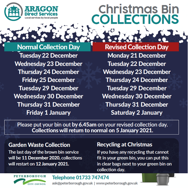 Changes to the he Council’s bin collections over Christmas. Don’t forget that metallic gift wrap is not recyclable. The Household Recycling Centre will be open between 8-4 every day except for Christmas Day Boxing Day and New Year’s Daypic.twitter.com/sYAyBxW8pe