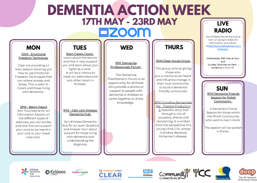 Our friends at Kirklees Dementia Hub are running a fantastic programme of events for