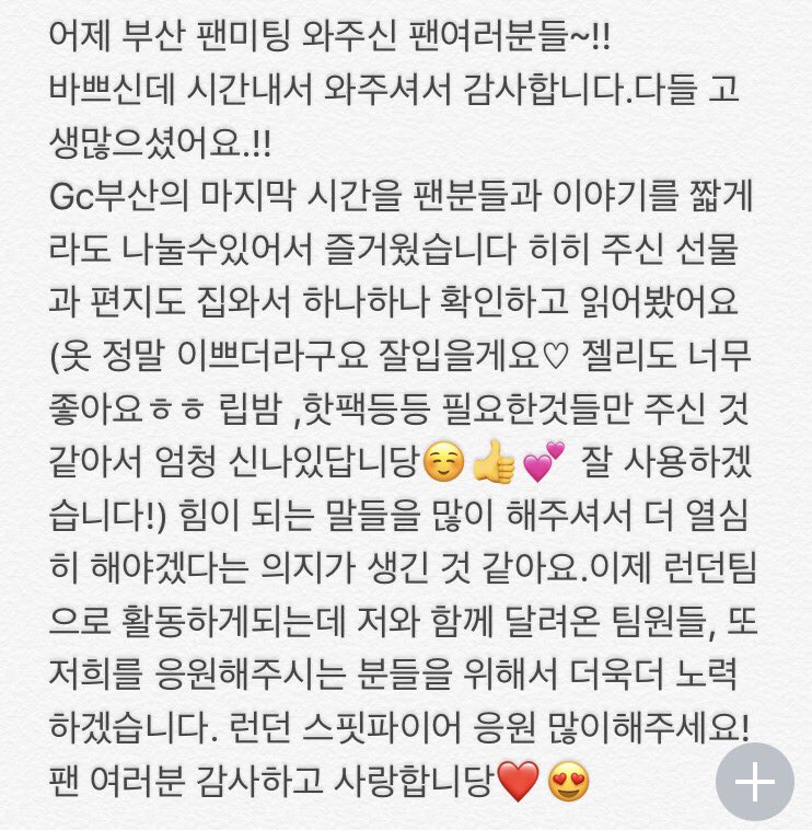 꿀로저님 넘 스ㅡ윗하셔서 아직도 혀가 아릴 지경ㅠㅠ 어제 팬미팅 늦게까지 피곤하셨을텐데 수고많으셨어요! 항상 응원합니다 LA가셔서도 몸건강히 잘지내시고 런던 스핏파이어 화이팅입니다
